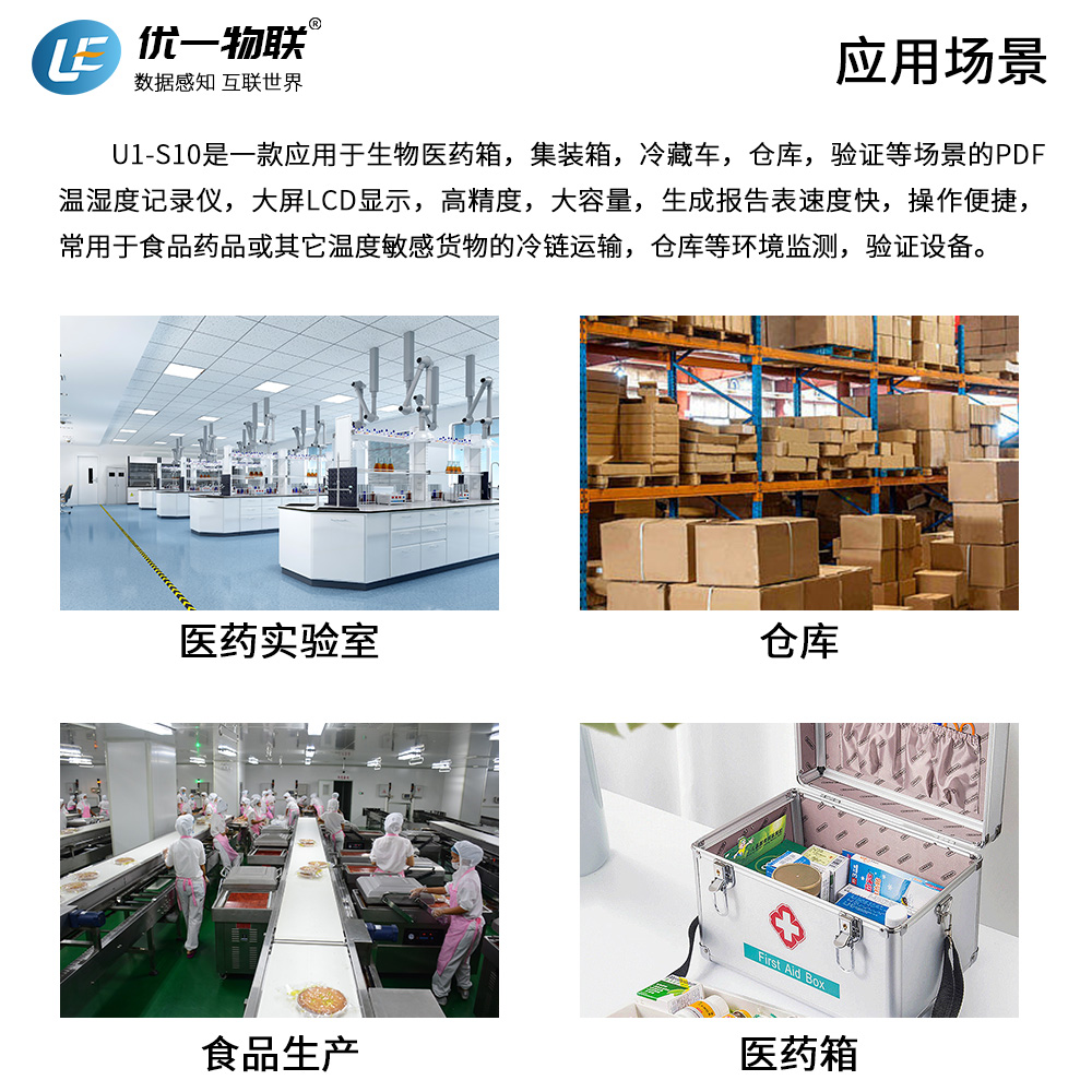 U1-S10是一款應(yīng)用于生物醫(yī)藥箱,集裝箱,冷藏車,倉庫,驗(yàn)證等場(chǎng)景的PDF溫濕度記錄儀,大屏LCD顯示,高精度,大容量,生成報(bào)告表速度快,操作便捷,常用于食品藥品或其它溫度敏感貨物的冷鏈運(yùn)輸,倉庫等環(huán)境監(jiān)測(cè),驗(yàn)證設(shè)備。