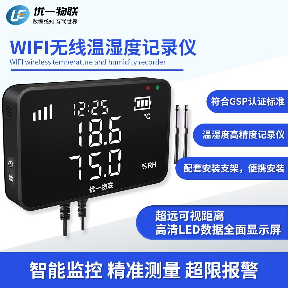 S200W WIFI產品系列是一款安裝在固定場所的無線溫濕度記錄儀,高清全屏LED顯示,可視距離遠,高精度,大存儲容量,配套支架安裝。 廣泛應用于農業、食品、醫藥、化工、電子、實驗室等在線監測系統中,該記錄儀采用瑞士原裝進口一體式傳感器,內置充電鋰電池,支持外電供電充電,超低功耗,且都支持外置可調聲光報警器。
